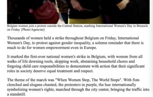 I analyzed a story about Belgian women on strike nationwide for equality published by China Daily. This is a really poor example of online news because so many things are missing in terms of web writing.