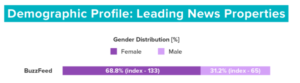 In addition, according to the Vetro Index, Buzzfeed’s audience is heavily biased towards women and younger audiences, with a base of nearly 70% female. Nearly 20% of the audiences are between 18 and 24 years old and a quarter of the audiences are between 25 and 34 years old.