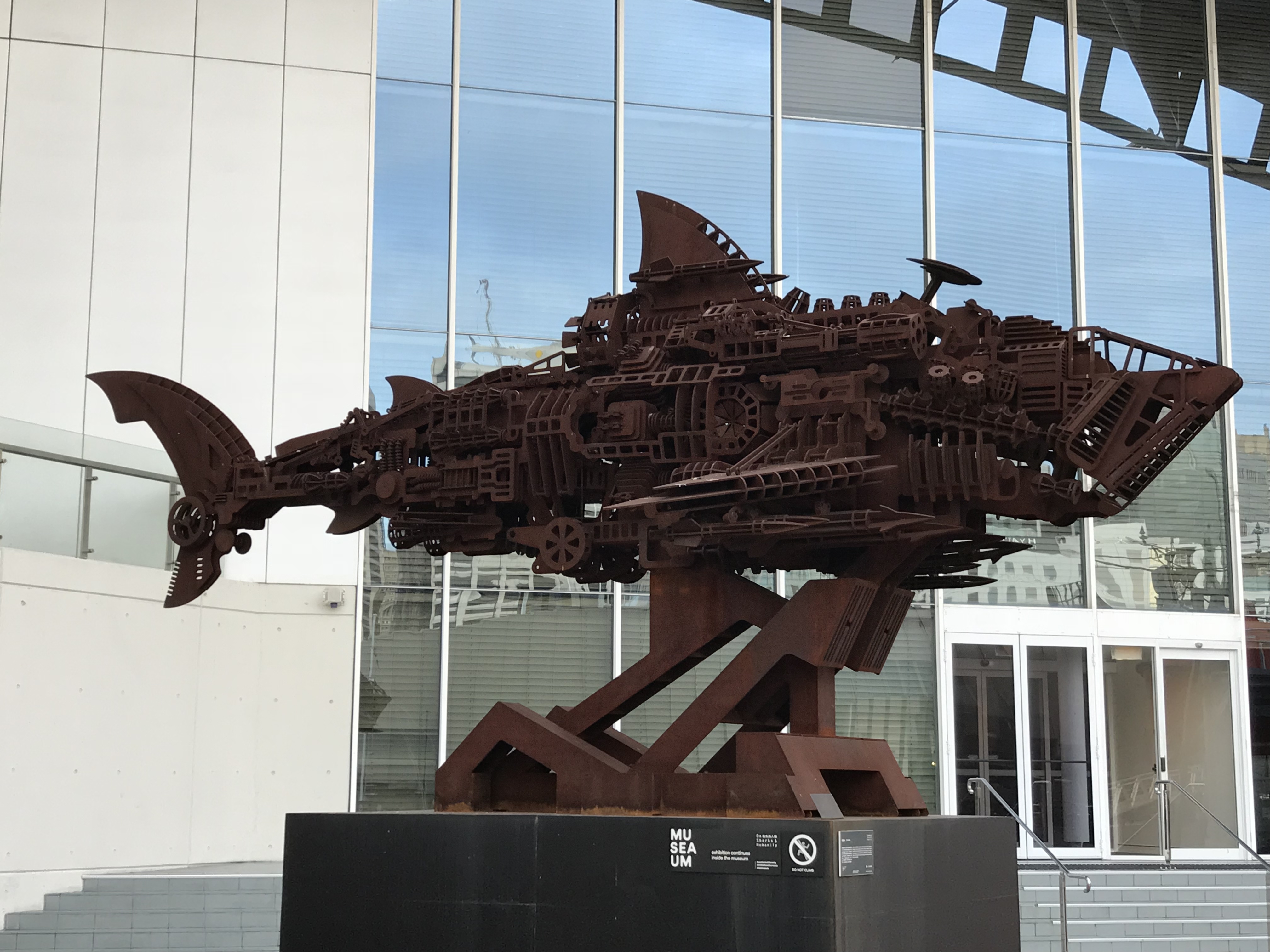 The artists use their artworks to teach a class about enlightenment, judgement, and reflection for human being. Each of the works implies a metaphor, but can be summarised as the struggle and whoop of the shark.